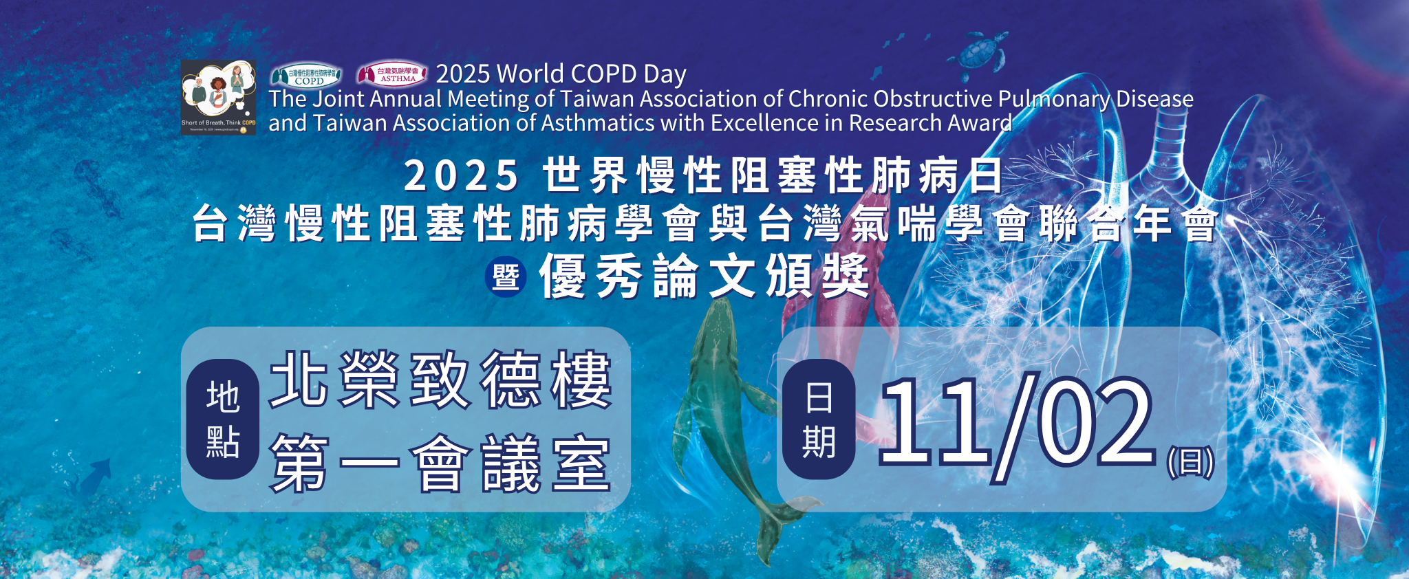 以上將於2025/11/2(日)台灣慢性阻塞性肺病學會與台灣氣喘學會聯合年會 進行論文海報展示與頒獎